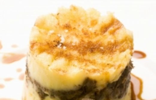 Menge Zutat 1 kg Kartoffeln, fest kochend 1 St Zwiebel 2 Knoblauchzehe 500 g Hack, gemischt 2 EL Butterschmalz 1 Dose Tomaten, geschä [...]