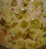 Rosenkohlsuppe mit Curry-Sahnehaube Zutaten 350 g Rosenkohl 1 Zwiebel 10 g Butter 500 ml Gemüsefond 300 ml Schlagsahne 2 EL Zitronensaft 2 Eigelb 3 TL Madras Currypulver Salz, Pfeffer, Muskat guk:similarity-keywords=""> 350 g Rosenkohl , 1 Zwiebel , 10 g Butte [...]