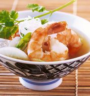 Brühe mit Huhn und Glasnudeln Zutaten 150 g Hähnchenbrustfilet ohne Haut 1 TL Sake 2 EL helle Sojasauce 40 g Glasnudeln 100 g Zuckerschoten Salz 8 kleine Cocktailtomaten 800 ml Dashi (Instant-Fischbrühe) Shichimi togarashi (scharfe Würzmischung) guk:similarity-keywords=""> [...]