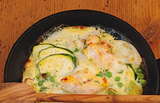 Gratinierter Fisch mit Lauch und Zucchini Zutaten 1 Stange Lauch 1 Zucchino (ca. 300 g) 200 g TK-Fischfilet (Kabeljau oder Seelachs) 125 g Mozzarella 100 g Sahne 100 g Crème fraîche 2 EL frisch gepresster Zitronensaft 1 TL mittelscharfer Senf 1 Bund Dill Salz Pfeffer 1 E [...]
