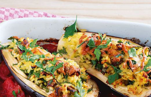 Gefüllte Auberginen Zutaten 2 Auberginen (je ca. 300 g) 2 EL Zitronensaft Salz 1 Zwiebel 2 EL Olivenöl 150 g Risotto-Reis 300-400 ml Gemüsebrühe 1 Bund glatte Petersilie 50 g geriebener Pizzakäse schwarzer Pfeffer ausd der Mühle 1 Dose geschälte gehackte Tomaten (400 g) [...]