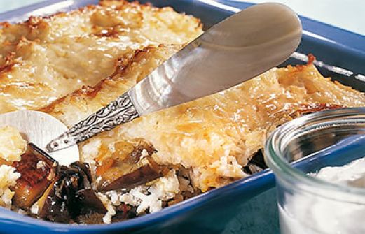 Reisauflauf mit Auberginen Zutaten 300 g Basmati-Reis Salz 2 Zwiebeln 2 Auberginen (550 g) 1 Döschen Safranfäden (0,2 g) 4 EL Öl gemahlener Pfeffer 200 g Joghurt 2 Eigelbe 3 EL Butter guk:similarity-keywords=""> 300 g Basmati-Reis , Salz , 2 Zwiebeln , [...]