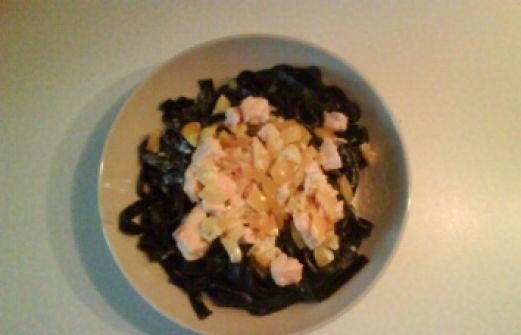 zutaten_2sp"> Zutaten für Personen Rezept mit Bild: Nudeln: Schwarze Bandnudeln mit Lachs-Sahne-Soße Bild einstellen 250 Gr. Lachsfilet 1 Eßlöffel Butter 75 ml. Milch 75 ml. Sahne Salz gemahlerner bu [...]