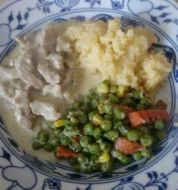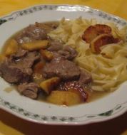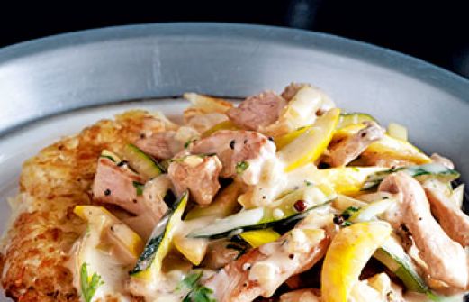 Kalbsgeschnetzeltes mit bunten Zucchini Zutaten 1 große Zwiebel 600 g gelbe und grüne Zucchini 1 Handvoll Kerbel (ersatzweise Petersilie) 500 g Kalbfleisch (z. B. aus der Nuss oder Oberschale) 100 g geräucherter gekochter Speck 2 EL Öl Salz frisch gemahlener weißer Pfeff er [...]