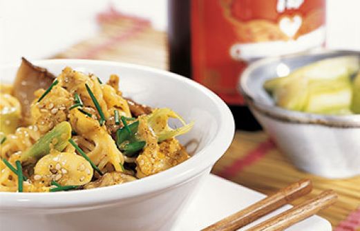 Bratnudeln mit Currypilzen Zutaten 200 g asiatische Mie-Nudeln (Instant-Nudeln) 4 Frühlingszwiebeln 300 g Pilze (z.B. Champignons und Austernpilze gemischt) 4 EL geschmacksneutrales Öl 2 EL Sesamsamen 2-3 TL scharfes Currypulver (Madras) Salz 200 ml Gemüsebrühe 4 EL Sahne 1/2 [...]