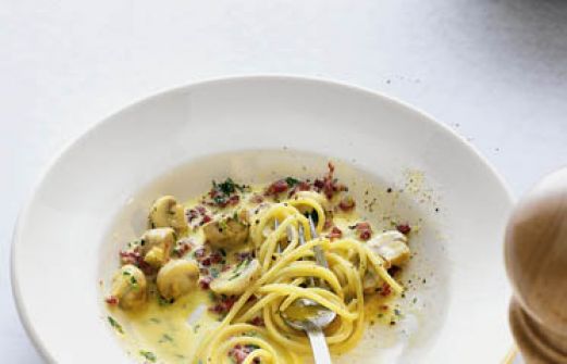 Carbonara Nuova Zutaten 200 g kleine Champignons 100 g geräucherter, gewürfelter Speck Salz 2 ganz frische Eier 100 g Sahne 50 g frisch geriebener Bergkäse oder Emmentaler 2 EL TK-Petersilie frisch gemahlener Pfeffer guk:similarity-keywords=""> 200 g kleine Champigno [...]