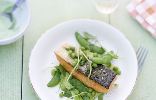 Lachs auf Erbsenpüree und Zuckerschotensalat Zutaten 100g g Zuckerschoten Salz 400 g Erbsen (frisch oder tiefgekühlt) 50 g Erbsensprossen 2 Stängel Minze 1 EL Weißweinessig 1-2 TL Ahornsirup 3 EL Rapsöl Pfeffer 2 Schalotten 50 g Butter 100 ml Geflügelbrühe frisch gerieb [...]