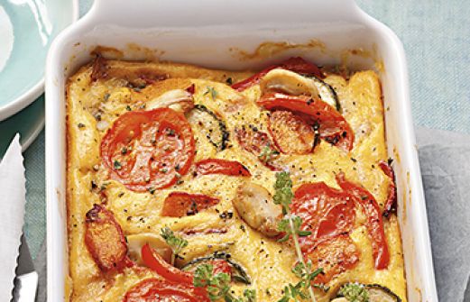 Gemüseauflauf mit Polenta Zutaten 600 g gemischtes Gemüse (z. B. rote Paprikaschoten, Zucchini und Hokkaido-Kürbis) 50 g Champignons 2 Tomaten (ca. 160 g) 1 EL Olivenöl Salz schwarzer Pfeffer aus der Mühle 30 g würziger Hartkäse (z. B. Cheddar) 1 Zweig Thymian 200 ml klare Ge [...]