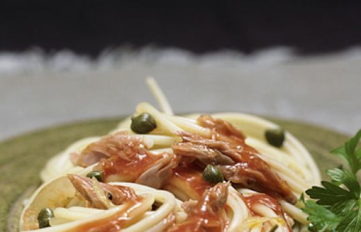 Spaghettini mit Thunfischsauce Zutaten Salz 100 g Spaghettini 1 kleine Zwiebel 1 EL Olivenöl 1 EL Tomatenmark 1 Dose Thunfisch (naturell, 56 g Abtropfgewicht) 1 EL kleine Kapern (aus dem Glas) Pfeffer 2-3 Stängel Petersilie guk:similarity-keywords=""> Salz , 100 [...]