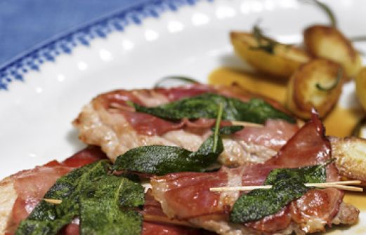 Saltimbocca Zutaten 10 g Butter 1 großes dünnes Kalbsschnitzel (ca. 150 g) 1 Scheibe luftgetrockneter Schinken (z. B. Parma oder Serrano, ca. 15 g) 3 Salbeiblätter Salz Pfeffer 1 EL Olivenöl 4 EL Marsala (oder Sherry medium) Holzspießchen zum Feststecken guk:similarity-key [...]