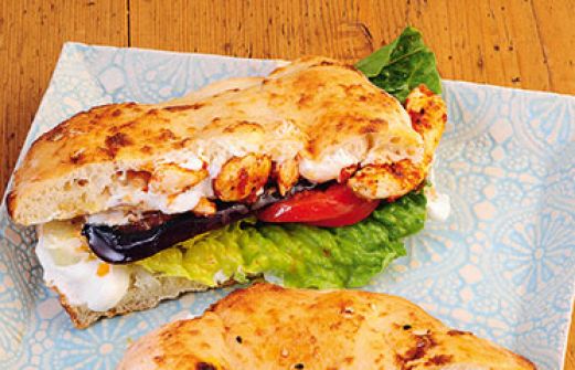 Hähnchen-Pita mit Auberginen Zutaten 3 EL frisch gepresster Zitronensaft 3 EL Olivenöl 2 Knoblauchzehen 1 kleine Aubergine (ca. 200 g) 3-4 EL Öl Salz Pfeffer 200 g Hähnchenbrustfilet 1 EL Pesto rosso (Fertigprodukt; aus dem Glas) 1/2 türkisches Fladenbrot ca.1 TL edelsüßes [...]