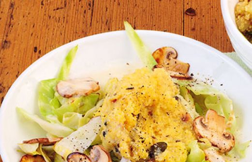 Kürbiskern-Polenta mit Spitzkohl Zutaten 250 g Spitzkohl 125 g braune Champignons 2 Schalotten 20 g Kürbiskerne 150 ml Milch Salz 70 g Instant-Polenta 20 g Butter 1- 2 TL frisch gepresster Zitronensaft Pfeffer 1 EL Öl 50 ml trockener Weißwein (z. B. Chardonnay; ersatzwe [...]
