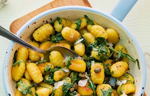 Gnocchi mit Rucolabutter Zutaten 1 Bio-Zitrone 50 g weiche Butter 1 Knoblauchzehe Salz Pfeffer 50 g Rucola 1 EL Öl 500 g frische Gnocchi (aus dem Kühlregal) 3 TL eingelegte Kapern 30 g ital. Hartkäse (nach Belieben) guk:similarity-keywords=""> 1 Bio-Zitrone , 50 [...]