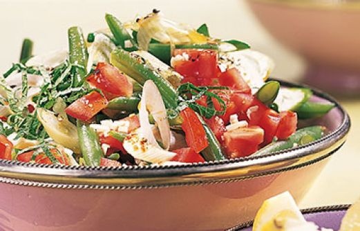 Bohnensalat mit Minze Zutaten 500 g grüne Bohnen Salz 1 Bund Frühlingszwiebeln 1 Bund Minze 2 Tomaten 2 Knoblauchzehen 4 EL Zitronensaft 1/2 TL rosenscharfes Paprikapulver schwarzer gemahlener Pfeffer 4 EL Olivenöl Zitronenschnitze zur Deko guk:similarity-keywords=""> [...]