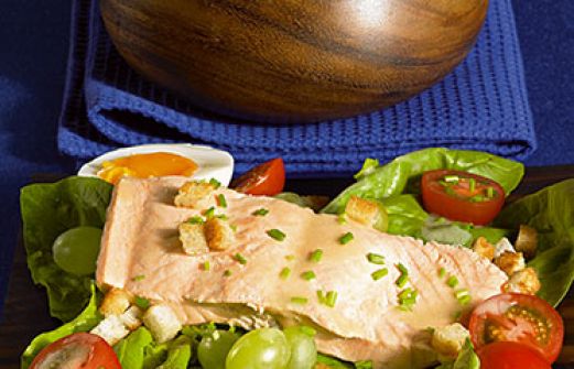 Spinatsalat mit Lachs Zutaten 2 Eier 200 g Lachsfilet 1 unbehandelte Zitrone Salz 150 g junger Blattspinat 6 Cocktailtomaten 20 kernlose Weintrauben 2 Scheiben Toastbrot 2 EL Weißweinessig 1 gehäufter TL Crème fraîche 1 TL Dijonsenf 1 TL Honig Pfeffer 3 EL Walnussöl [...]