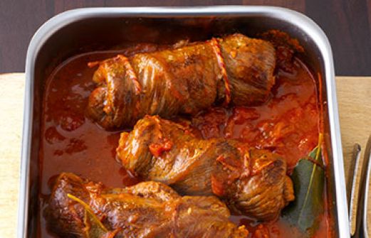 Rouladen mit Schinken-Lauch-Füllung Zutaten 1 dünne Stange Lauch (100 g) 20 g magerer Schinken 1 1/2 EL Olivenöl Salz schwarzer Pfeffer 2 Stücke Rinderrouladenfleisch (400 g) 2 TL mittelscharfer Senf 1 mittelgroße Zwiebel 1 Knoblauchzehe 1/2 kleine Dose geschälte, gehackte To [...]