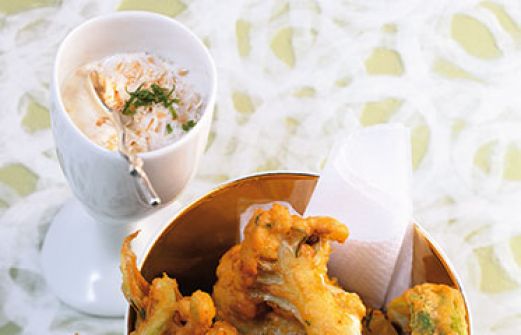 Blumenkohl-Pakoras mit Kokos-Raïta Zutaten 400 g Blumenkohl Salz 1 kleine Zwiebel 150 g Kichererbsenmehl 1 TL Backpulver 1 TL gemahlener Koriander 1 TL gemahlener Kreuzkümmel 2 TL Zitronensaft 1 Knoblauchzehe 250 g cremig gerührter Naturjoghurt 50 g Kokosflocken 1 grüne [...]