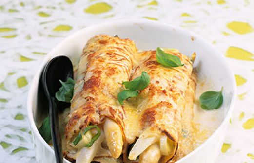 Gratinierte Basilikum-Pfannkuchen Zutaten 50 g Butter 1 Bund Basilikum 5 Eier (Größe M) 200 ml Milch 200 g Mehl 5 EL geriebener Parmesan Salz 500 g weißer Spargel Zucker 300 g Lauch 2 EL Öl + Öl zum Ausbacken 200 ml Gemüsebrühe 200 g Sahne 1 TL Speisestärke Pfeffer [...]
