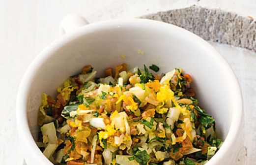 Zitronen-Fenchel-Salsa Zutaten 1 Bund Petersilie 8 in Öl eingelegte Sardellenfilets 1/4 Salzzitrone (aus dem Orientladen, oder 2 TL abgeriebene Schale von 1 Bio-Zitrone) 8 getrocknete Aprikosen (oder Datteln) 1 Fenchelknolle 3-4 EL frisch gepresster Zitronensaft Salz Pfeffer [...]
