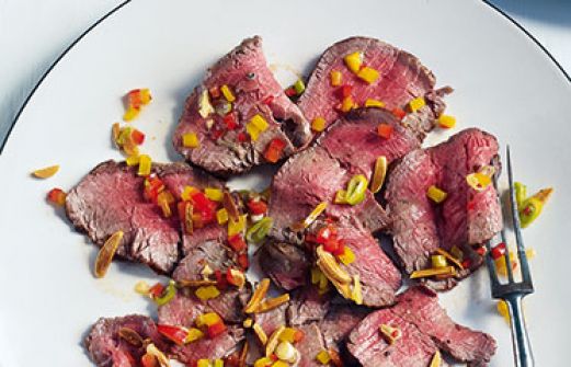 Roastbeef mit Paprika-Salsa Zutaten 2 EL Mandelstifte je 1 kleine rote und gelbe Paprikaschote 1 große rote Chilischote 3 Frühlingszwiebeln 1 Knoblauchzehe 2 EL Zitronensaft Salz Zucker 4 EL Olivenöl ca. 250 g Roastbeef guk:similarity-keywords=""> 2 EL Mandelstifte , [...]