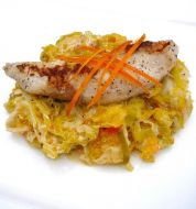 Orangen-Suppe mit Seeteufel Zutaten 500 g Seeteufelmedaillons 250 ml Orangensaft 2 EL Zitronensaft Salz Pfeffer 60 g Reis 1 Zwiebel 1/2 grüne Paprikaschote 3 mittelgroße Möhren 1 Orange 20 g Butter 1 TL Kurkuma 500 ml Gemüsebrühe 200 g Sahne 1 TL Safranfäden 1-2 [...]