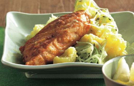 Seelachs mit Meerrettich-Stampfkartoffeln Zutaten 1 kg vorwiegend festkochende Kartoffeln Salz 500 g Lauch 60 g Butter 1 TL Kümmel Pfeffer 600 g Seelachsfilet 2 EL Mehl 1 TL Paprikapulver 1 EL Meerrettich (Glas) guk:similarity-keywords=""> 1 kg vorwiegend festkoc [...]