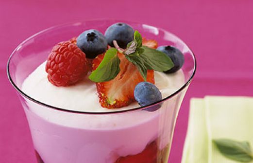 Beeren-Joghurtdessert Zutaten 500 g gemischte Beeren (frisch oder aufgetaute TK-Ware) 100 g Kirschkonfitüre 4 Blatt weiße Gelatine 1-2 Limetten (ersatzweise 1 unbehandelte Zitrone) 300 g Birnen- oder Pfirsichjoghurt 2 EL Puderzucker 200 g Sahne 1 EL gehackte Pistazien nach Belie [...]
