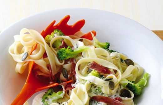 Nudeln mit Brokkoli und Schinken Zutaten 300 g Brokkoli 100 ml Gemüsebrühe 200 g Vollmilchjoghurt 1 EL Hirseflocken 50 g luftgetrockneter Schinken ohne Fett und Schwarte (z. B. Parma- oder Serrano-Schinken) 150 g schmale Bandnudeln Salz 1 EL Butter Pfeffer 1/2 TL getrockneter [...]