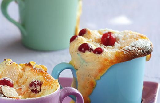 Quarkauflauf mit Johannisbeeren Zutaten 400 g rote Johannisbeeren 4 Eier (Größe M) 150 g Zucker 250 g Magerquark 250 g Ricotta Salz abgeriebene Schale von 1 Bio-Zitrone 50 g Grieß 100 g gehobelte Mandeln 50 g gemahlene Mandeln Puderzucker zum Bestäuben (nach Belieben) B [...]