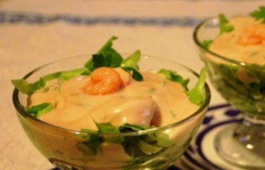 Menge Zutat 1/2 St Kopfsalat 1 gl Krabben (Abtropfgewicht 125 g) 1 EL Mayonnaise 1 EL Ketchup 1 TL Brandy 1 Bch Magerjoghurt [...]