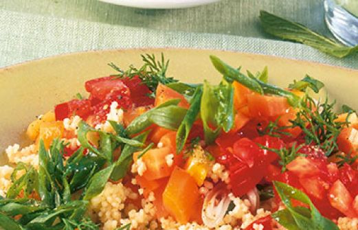 Couscous-Salat Zutaten 200 g Möhren 200 ml Gemüsebrühe 100 g Instant-Couscous (grober Weizengrieß, vorgekocht) 1 1/2 EL Olivenöl 5 EL Zitronensaft Salz Pfeffer 2 Frühlingszwiebeln 250 g Tomaten 1/2 Bund Dill guk:similarity-keywords=""> 200 g Möhren , 200 ml G [...]