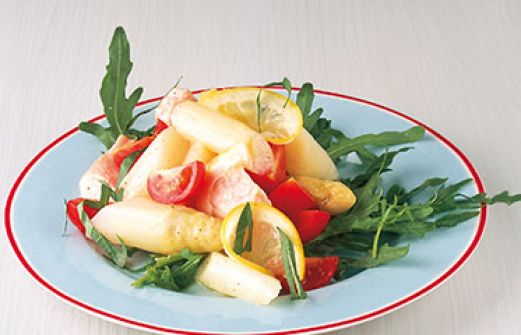 Spargel mit Lachs, Rucola und Bärlauch Zutaten 750 g weißer Spargel Salz 150 g Kirschtomaten 1 Bund Rucola ½ Bund Bärlauch (ersatzweise Rucola) 400 g Lachsfilet 1 Bio-Zitrone Pfeffer 1 TL Ahornsirup 4 EL Olivenöl guk:similarity-keywords=""> 750 g weißer Spargel , [...]