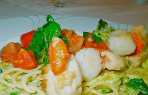 Jakobsmuscheln auf Bärlauch-Spaghetti Zutaten 8 Stk. Jakobsmuscheln mit Corail(Roggen der männlichen Tiere) Olivenöl zum Braten Salz, Pfeffer aus der Mühle 200 g gekochte Spaghetti 0,1 l Obers 1 Stk. Ei 50 g geriebener Parmesan 30 g frischer Bärlauch 2 Stk. Tomaten 1 EL Zwiebel [...]