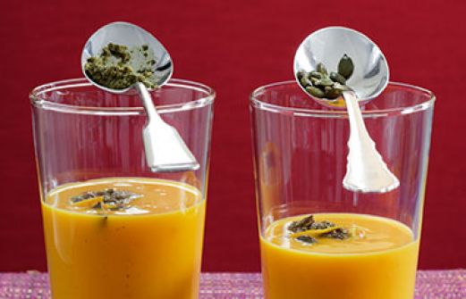 Kürbissuppe mit Orange Zutaten 1 Stück Kürbis (etwa 800 g) 1 Stück Ingwer (etwa 4 cm lang) 2 Knoblauchzehen 2 EL Butter 1 l Gemüsebrühe 1 Bio-Orange 2 EL Crème fraîche Salz und Pfeffer 2 EL Kürbiskerne 1 EL Salatpesto guk:similarity-keywords=""> 1 Stück Kürbis (etwa [...]