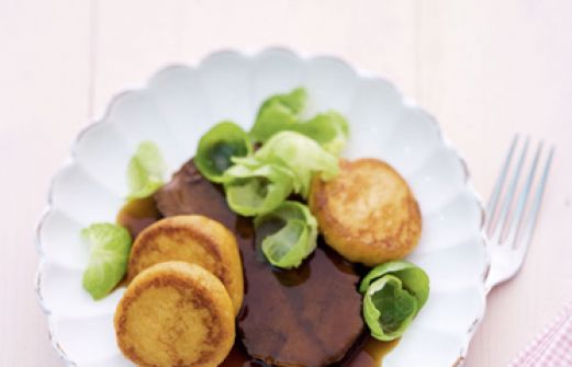 Rinderbraten mit Kürbis-Kartoffel-Plätzchen Zutaten 1,5 kg Rinderbraten (küchenfertig; z. B. schmales Schafelstück vom Rind) Salz Pfeffer 400 g Gemüse (z. B. Möhren, Knollensellerie, Lauch und Zwiebel) 30 g Butterschmalz 2 EL Tomatenmark 750 ml kräftiger Rotwein 750 ml Rinderbrüh [...]