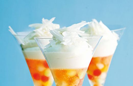 Champagner-Mousse auf Gelierten Champagner-Melonen Zutaten je 1/4 Honigmelone mit hellem, grünem und orangefarbenem Fruchtfleisch 1/4 Wassermelone, möglichst ohne Kerne 5 Blatt Gelatine 400 ml Champagner (ersatzweise guter Sekt, z. B. Rieslingsekt) 3 sehr frische Eier 100 g Zucker [...]