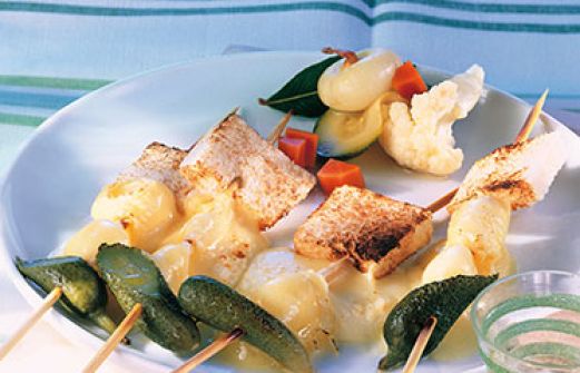 Käsefondue am Spieß Zutaten 500 g fester Käse (z. B. Bergkäse, Raclettekäse, Emmentaler) 8 Scheiben altbackenes Toastbrot 10 Cornichons frisch gemahlener schwarzer Pfeffer Kirschwasser (wer mag) 300 g Mixed Pickles zum Servieren lange Metallspieße Öl für die Spieße guk:similari [...]