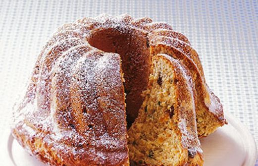 Gugelhupf Zutaten 500 g Mehl (Type 550) 1 Würfel Hefe (42 g) 100 g Zucker 1/4 l lauwarme fettarme Milch 2 Eier 1/4 TL Salz 75 g Joghurtbutter 100 g getrocknete Soft-Aprikosen 75 g Rosinen 2 EL Rum oder Apfelsaft 30 g gehackte Pistazien Fett und Mehl für die Form 1 EL Pu [...]