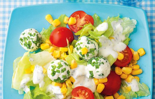 Maissalat Zutaten 180 g Magerquark 40 g Kräuter-Frischkäse 1/2 Bund Schnittlauch 1/4 Eisbergsalat 1 kleine Dose Mais (285 g) 50 g Kirschtomaten 1/2 Bund Dill 50 g saure Sahne 50 g Naturjoghurt 1 EL Zitronensaft 1 EL Orangensaft 1 Msp. Kräutersalz guk:similarity-keywo [...]