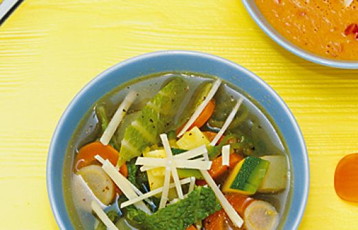 Minestrone Zutaten 1 Zwiebel 2 Möhren 50 g Petersilienwurzel ½ Stange Lauch 2 Zucchini 2 mittelgroße festkochende Kartoffeln 200 g Wirsing 2 EL Olivenöl Salz schwarzer Pfeffer aus der Mühle 750 ml Wasser 50 g Suppennudeln (z. B. Muschelnudeln) 2-5 EL gehobelter Parmesan [...]