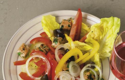 Bauernsalat mit Pute Zutaten 2 Paprikaschoten (z. B. rot und gelb) 4 mittelgroße Tomaten 1 Salatgurke 1 kleine Gemüsezwiebel ½ Kopfsalat (z. B. Eisbergsalat) ½ Bund Petersilie 250 g Putenbrust 5 EL Öl (z. B. Olivenöl) Salz Pfeffer 3-4 EL Weißweinessig 50 g schwarze Olive [...]