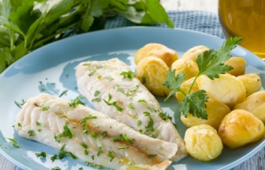 Menge Zutat 1500 g Dorsch 125 g Butter 4 EL Senf 2 kleine Zwiebeln 6 EL Essig 1 St Zitrone etw [...]