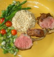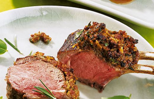 Lammkarree mit Tomatenkruste Zutaten 100 g grüne Oliven (ohne Stein) 100 g getrocknete Tomaten 1 Bund Basilikum 100 g Pinienkerne 2 vorbereitete Lammkarrees (à 400-500 g, beim Metzger bestellen) Salz Pfeffer 2 EL Olivenöl 1 Eiweiß guk:similarity-keywords=""> 100 g grü [...]