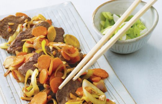 Rindfleisch aus dem Wok mit Möhren und Ingwer Zutaten 1 zartes Rindersteak, ca. 200 g 2 EL Sojasauce + Sojasauce zum Abschmecken Cayennepfeffer 400 g junge Möhren 1 dünne Stange Lauch 2 Knoblauchzehen 1 Stück Ingwer, ca. 20 g 1 Stängel Zitronengras 2 Frühlingszwiebeln 2 TL [...]