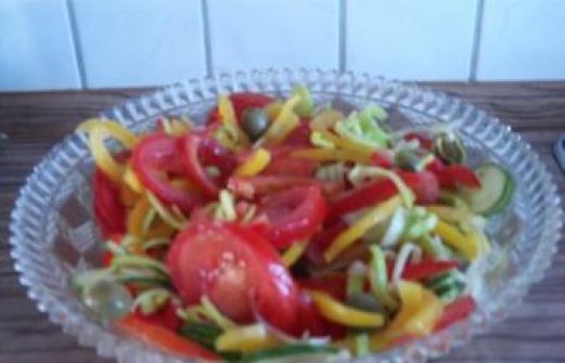 zutaten_2sp"> Zutaten für Personen Bild einstellen rote und gelbe Paprikaschoten 1 kleine Stage Lauch 4 Tomaten 2 Zucchini 1 Glas Oliven 85g 1 Zehe Knoblauch 4 EL Essig 3 EL Olivenöl Salz, frisch gemahlenen P [...]