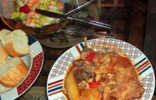 zutaten_2sp"> Zutaten für Personen Bild einstellen 1 Lammkeute, evt. einmal durchhacken lassen 2 rote Paprika 8 Knoblauchzehen gehackt 1 große Gemüsezwiebel 1 Dose Tomatofrito oder passierte Tomaten 4 Kartoffeln Weißw [...]