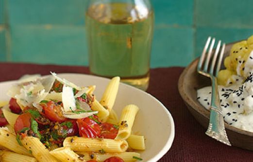 Penne arrabbiata mit Trüffelbutter Zutaten Salz 600 g Kirschtomaten 2 rote Chilischoten 1 Bund glatte Petersilie 60 g Parmesan 400 g Penne 3 EL Olivenöl schwarzer Pfeffer, frisch gemahlen 40 g Trüffelbutter guk:similarity-keywords=""> Salz , 600 g Kirschtomaten [...]