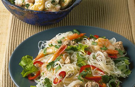 Glasnudelsalat mit Garnelen Zutaten 100 g Glasnudeln 2 EL Fischsauce 3 EL Limettensaft 2 TL Zucker 3 Stangen Thai-Sellerie 3 Thai-Frühlingszwiebeln 1 Bund Koriandergrün 1 große rote Chilischote 200 g gegarte Garnelen (Partygambas, mit Schwanzflosse) 100 g Schweinehackfleisch [...]
