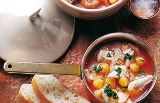 Hühnersuppe mit Reis und Kichererbsen Zutaten ½ Masthähnchen oder Suppenhuhn 1 Zwiebel 1 Lorbeerblatt 2 Gewürznelken Salz 100 g Patnareis 1 kleine Dose gegarte Kichererbsen (460 g Inhalt) 1 EL Tomatenmark 3-4 EL Zitronensaft schwarzer Pfeffer, frisch gemahlen 30 g Butter [...]