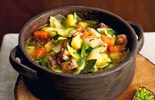 Pichelsteiner aus dem Tontopf Zutaten 300 g durchwachsenes Rindfleisch (z.B. Hochrippe) 300 g durchwachsenes Schweinefleisch (z.B. Schweinenacken) 600 g Weißkraut 2 Möhren (200 g) 200 g Knollensellerie 1 Petersilienwurzel (100 g) 400 g mehligkochende Kartoffeln 80 g Lauchgrün [...]